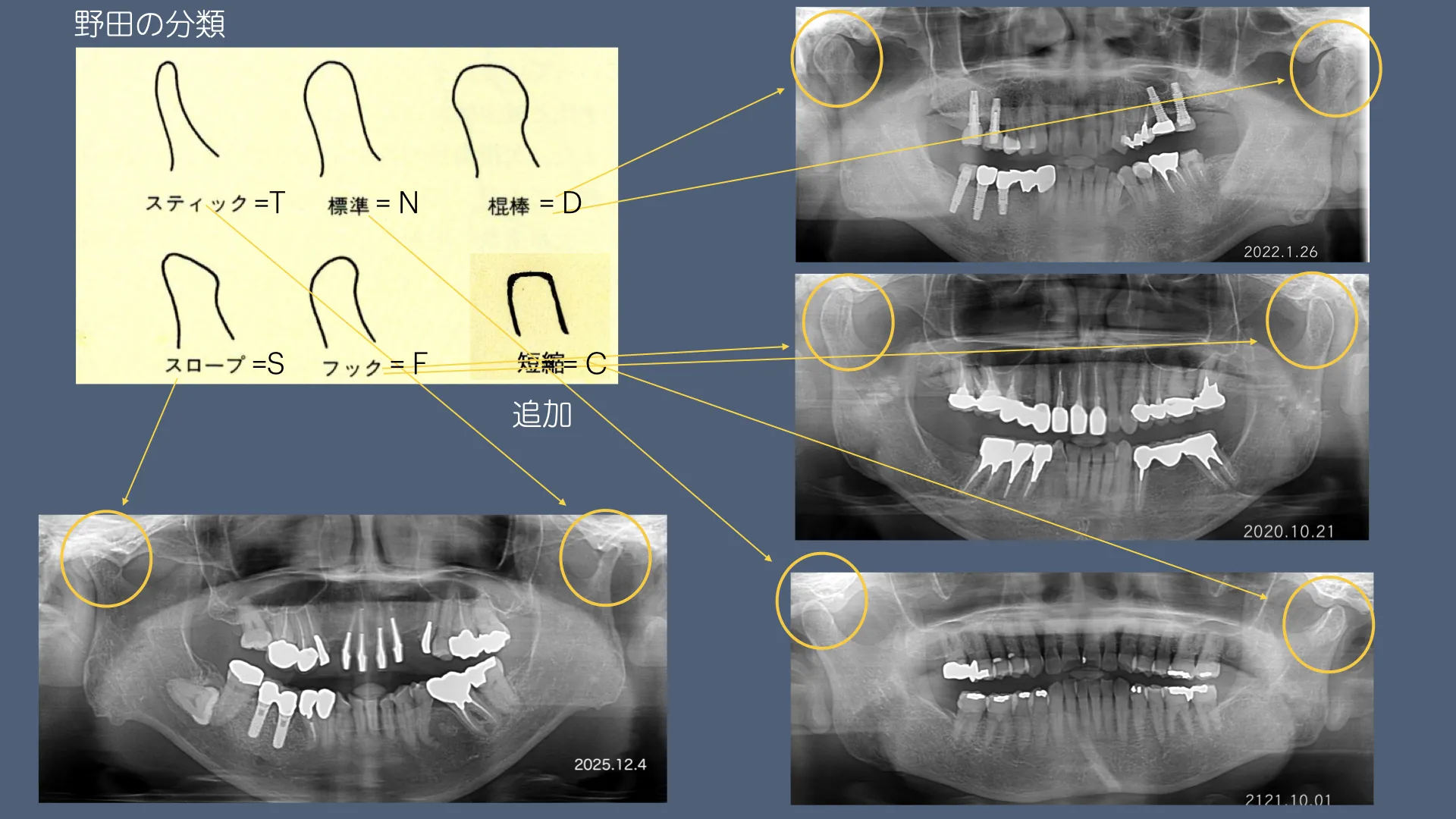 昨日はスタディグループ火曜会での発表の当番でした。今回も顎関節症関連のテーマで行いました。タイトルは『パノラマX線写真での顆頭形態の考察ー顆頭形態の多様性とその左右差及びリモデリングについて』です。この発表をまとめるために倉庫に籠り、昔のレントゲン写真を探したりして患者さんの顎関節の変化を確認しました。やはり改めてしらべてみると新たは発見があり勉強になりました。