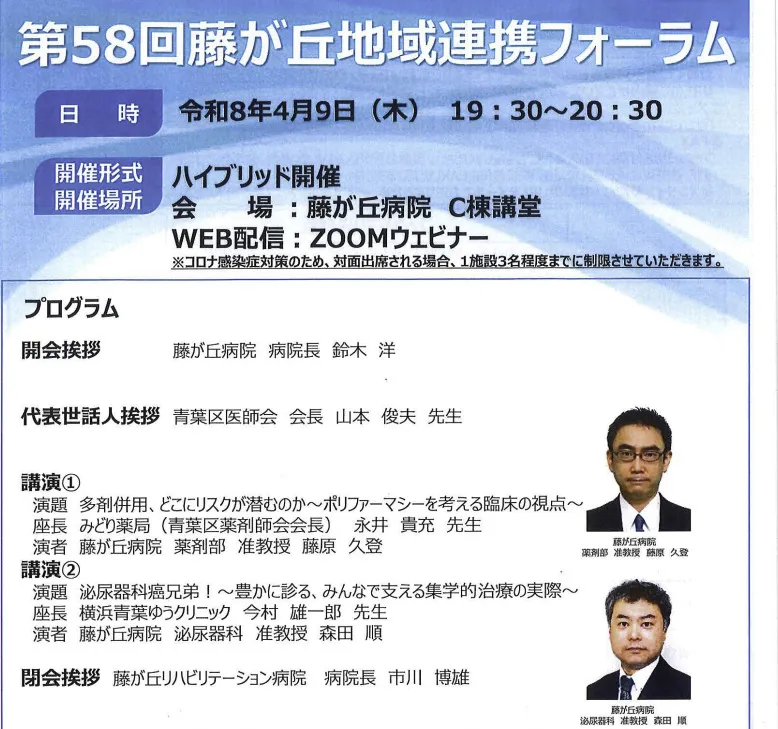 第58回藤が丘地域連携フォーラムに参加して来ました。フォーラムのテーマは直接歯科には関係がないことですが、人の体を扱う医療の一端を担うものとして知っていて悪いことではないので、医学の常識を多少でも触れたいと思い、歯科医ではありますが、なるべく参加するようにしています。今回のテーマで、多剤服用していることの問題点を薬剤師の先生が解説してくださったことは勉強になりました。
